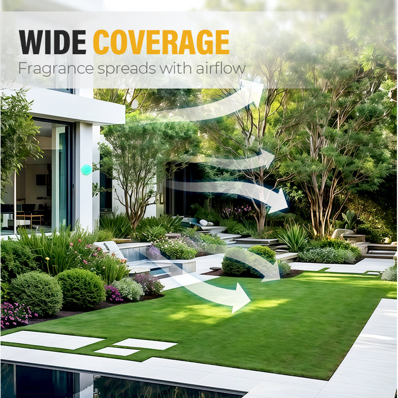 Große Reichweite: Der Duft verteilt sich mit der Luftströmung, wobei die Partikel jeden Winkel erreichen, um eine umfassende Bekämpfung von Nagetieren und Insekten in großen Innen- und Außenbereichen zu gewährleisten.