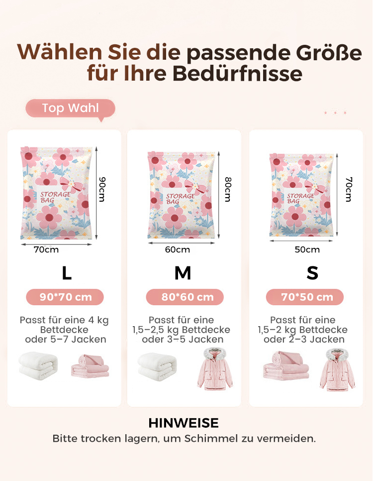 Platzsparende Aufbewahrungs-Vakuumbeutel