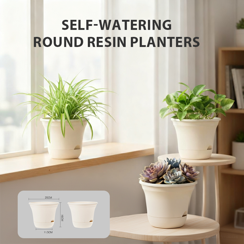 Runde Harz-Pflanzkübel mit Selbstbewässerung 💧🌿