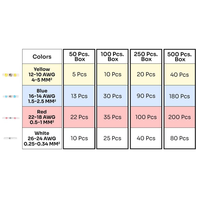 Wählen Sie mit einem Blick die richtige Größe dank farbcodierter Schläuche. Einfach Kabel messen und passenden Stecker wählen!